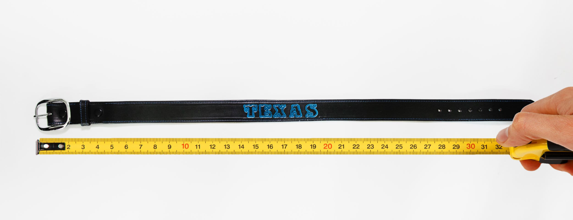If you have a belt already, measure from the tip of the belt buckle to whatever hole you punch into and subtract one inch.
